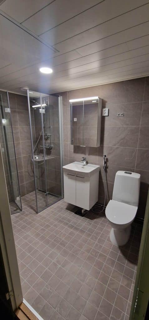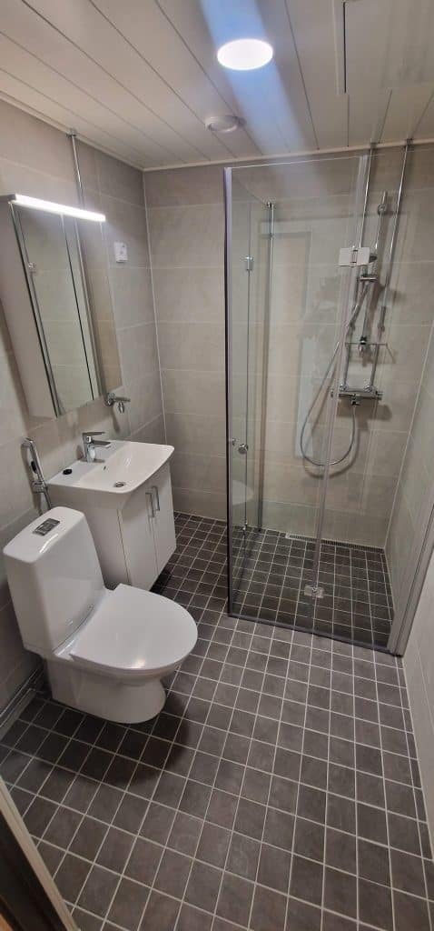 Saneeraus käsitti 89 huoneiston kylpyhuoneet, huoneistosaunat ja WC-tilat.