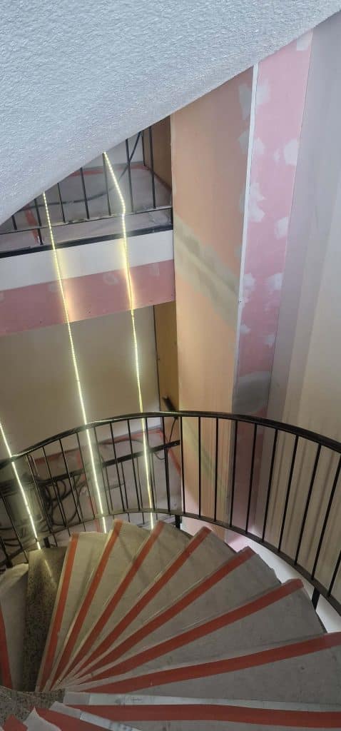 Tekniikkanousut rakennettiin porrashuoneisiin ja koteloitiin kauttaaltaan EI30-osastoiduilla koteloilla.