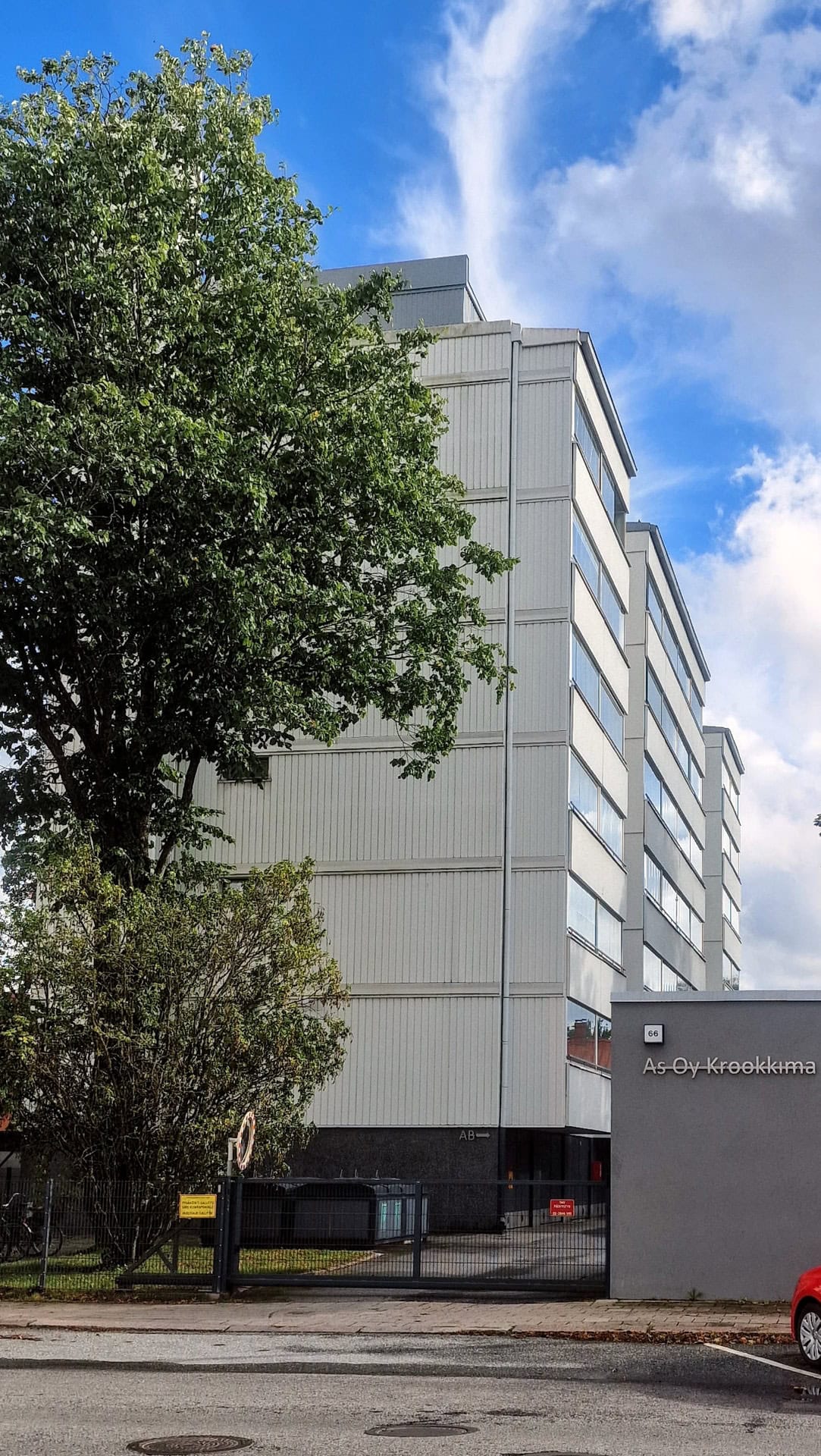 Tässä kerrostalon linjasaneerauksessa uusittiin LVIS-tekniikka, kylpyhuoneet, porrashuoneet ja saunaosasto, ja muiden yleisten tilojen pinnat ehostettiin.