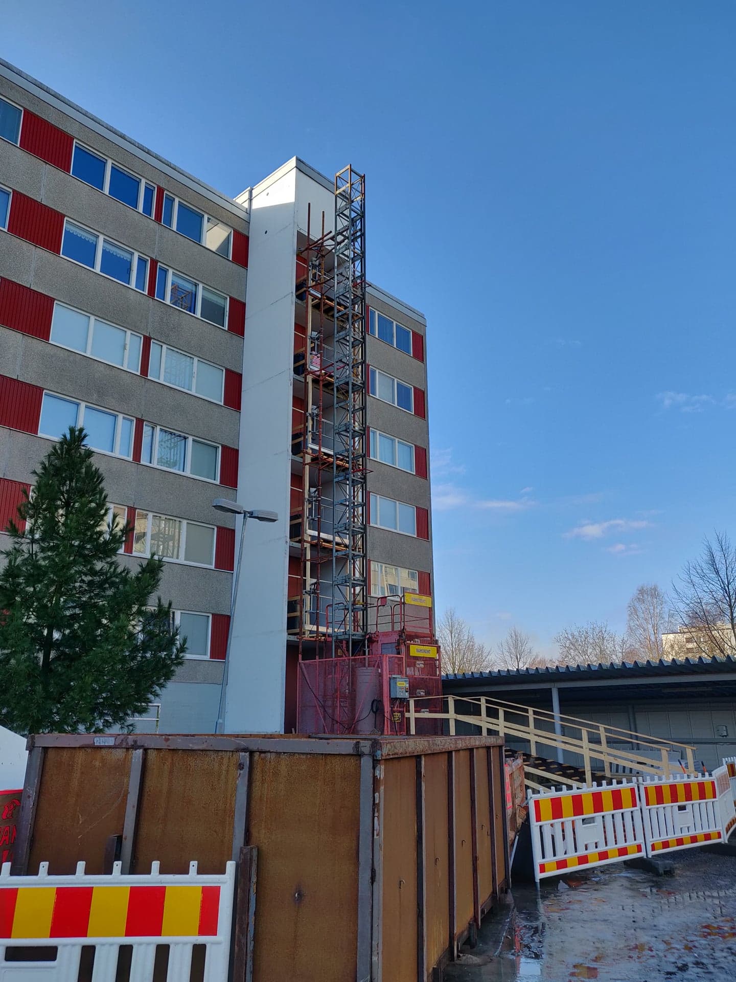 LVIS, kylpyhuoneet vesikiertoisella lattialämmityksellä, metallirakenteiset häkkivarastot ja 8 porrashuoneen pintaremontit. Kuusikerroksisten kerrostalojen omia hissejä ei käytetty, vaan tuuletusparvekkeille rakennettiin työmaahissit.